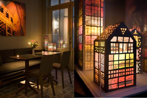 Hotel Jules and Jim, opened just recently, has only 23 guest rooms that are located in three buildings, linked by two inner courtyards. The main courtyard features an amazing green, vegetal wall and an open air fireplace - a perfect retreat for relaxation, while rooms are themed along three main subject lines - Jules, Jim and Hi-Macs, the latter ones offering a romantic ode to techno-age. Closet, toilet, shower and basin are placed in four corners of a room, while its center is reserved for a cozy bed, sheltered by a special hi-tech "cocoon".