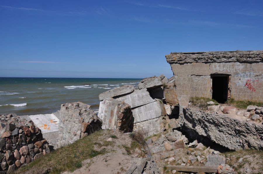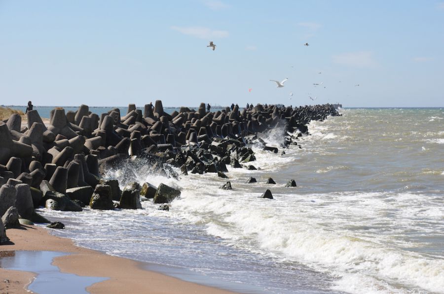 When it turned out that the fortress was of no strategic importance, some of the cannons in the complex were dismantled, melted down, or taken to the Kaunas fortress in Lithuania. There were also attempts to blow up the underground bunkers and armoury, but these were unsuccessful, and therefore they remain visible to this day. As you climb on top of and wander through the ruins of the fort, the wild waves of the Baltic Sea against the concrete might make you think you're by an ocean instead. The sea here has a different kind of strength, a different colour and dramatic character. It becomes harsher yet as you near the Northern Jetty, which was also once a part of the fort and military port complex. 1800 metres long and 7.35 metres wide, the sea sprays the blocks of black rock that stretch into the sea like a ghostly giant's path.