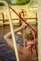 The most skilled ones pulled a line across Baltezers canal in Jugla. They walked across, plunged into the water, swam ashore and tried again and again. Waterlining across a swimming pool, a lake or a river can be a truly exciting and engaging pastime, yet it's important to make sure that water is deep enough and there are no obstacles in it. It has to be mentioned that waterlining perhaps is not the best option for total beginners. Seeing solid ground beneath helps a lot in the beginning, which is not the case in waterlining - shimmering and rippling water makes the job even more difficult. A different support point has to be chosen in this case, for example, something at the other end of the line, and it is considerably more difficult and requires even greater concentration.