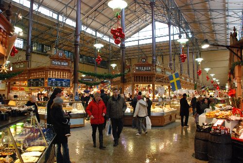 The red brick building of Östermalms Saluhall food market hall, is one if the most impressive examples of the late 1800s Romantic architecture in Stockholm. Built in 1888, it was designed by Isak Gustaf Clason. To quote the apt description by a contemporary journalist, from one side the red brick building with countless little towers is reminiscent of a medieval castle, from the other it becomes apparent that the metal structures championed by the 19th-century engineers - the Paris Eiffel Tower, a vivid symbol of the architecture of the time, among them - have also been a source of inspiration for the creator of Östermalms Saluhall. Originally one of the world's most prestigious indoor market buildings, Östermalms Saluhall has lost nothing of its unique ambience. Each of the market stalls is adorned with decorative woodcarvings and an easily noticeable sign with the stall-keeper's name - a very special and personal atmosphere. As befits a proper food market, Östermalms Saluhall offers every thinkable foodstuff, be it fruit, vegetables, fish, meat, smoked meats and fish, spices and a huge selection of delicacies. Östermalms Saluhall also houses a number of small wine bars and cafes, one of the most popular of which is Lisa Elmqvist Fisk, famous for its wide range of seafood that can be enjoyed right there, accompanied wby a glass of wine.